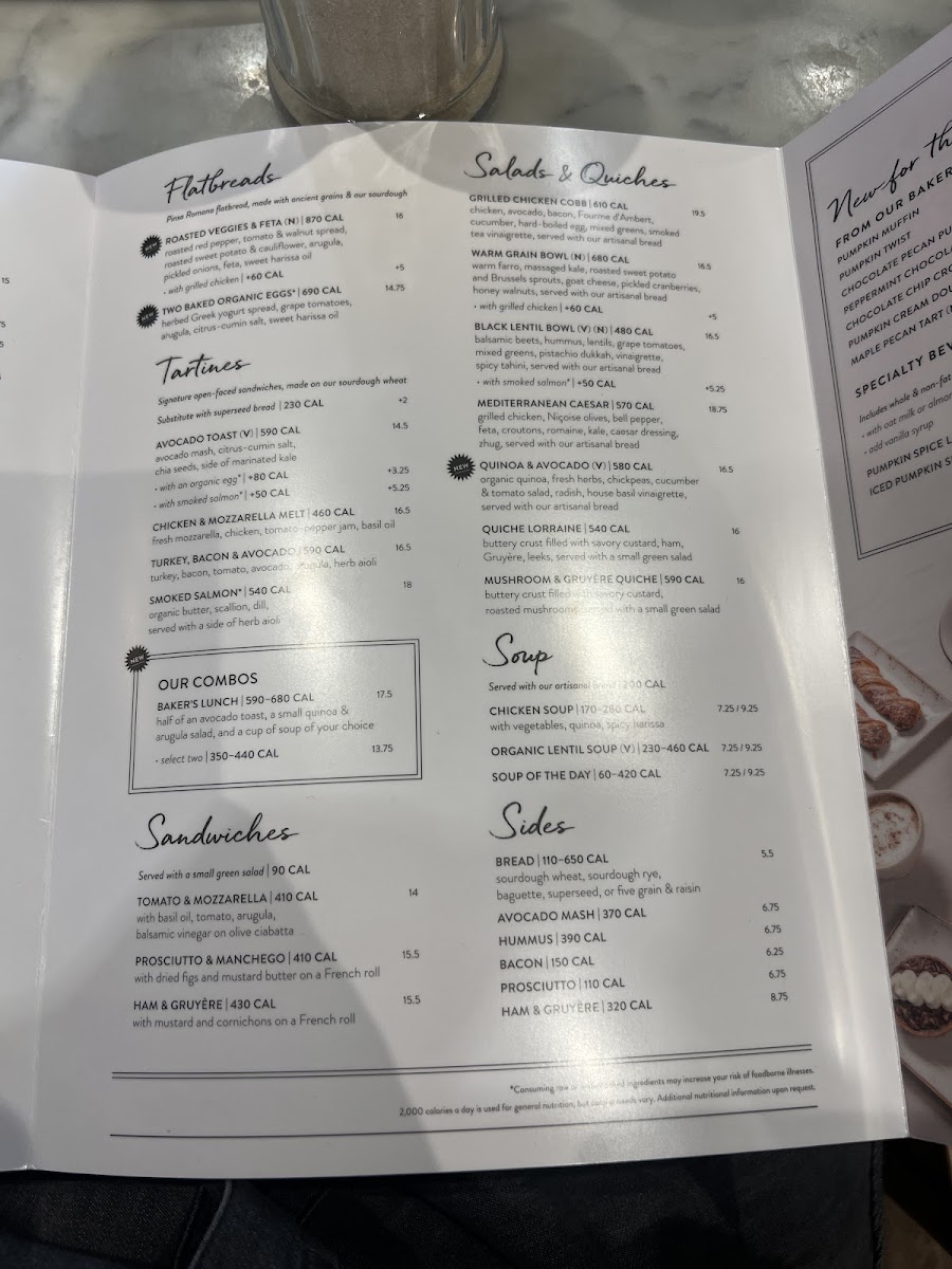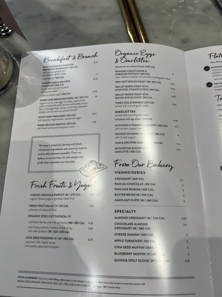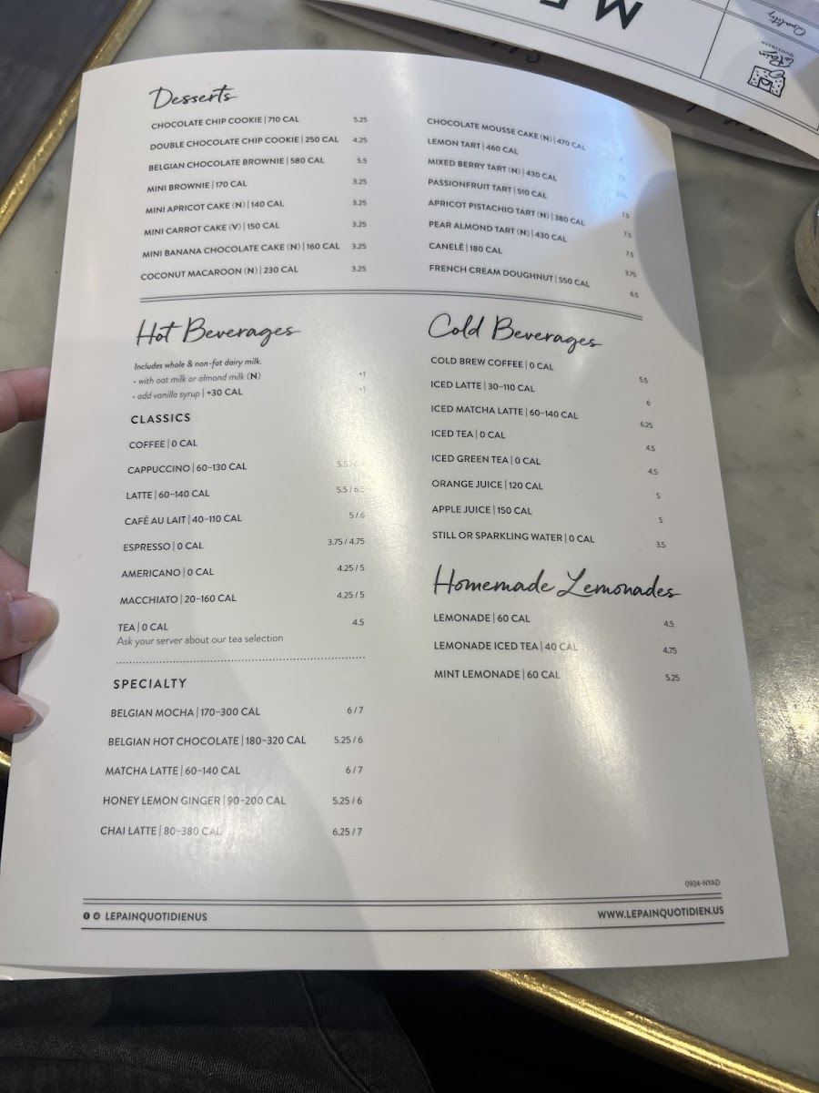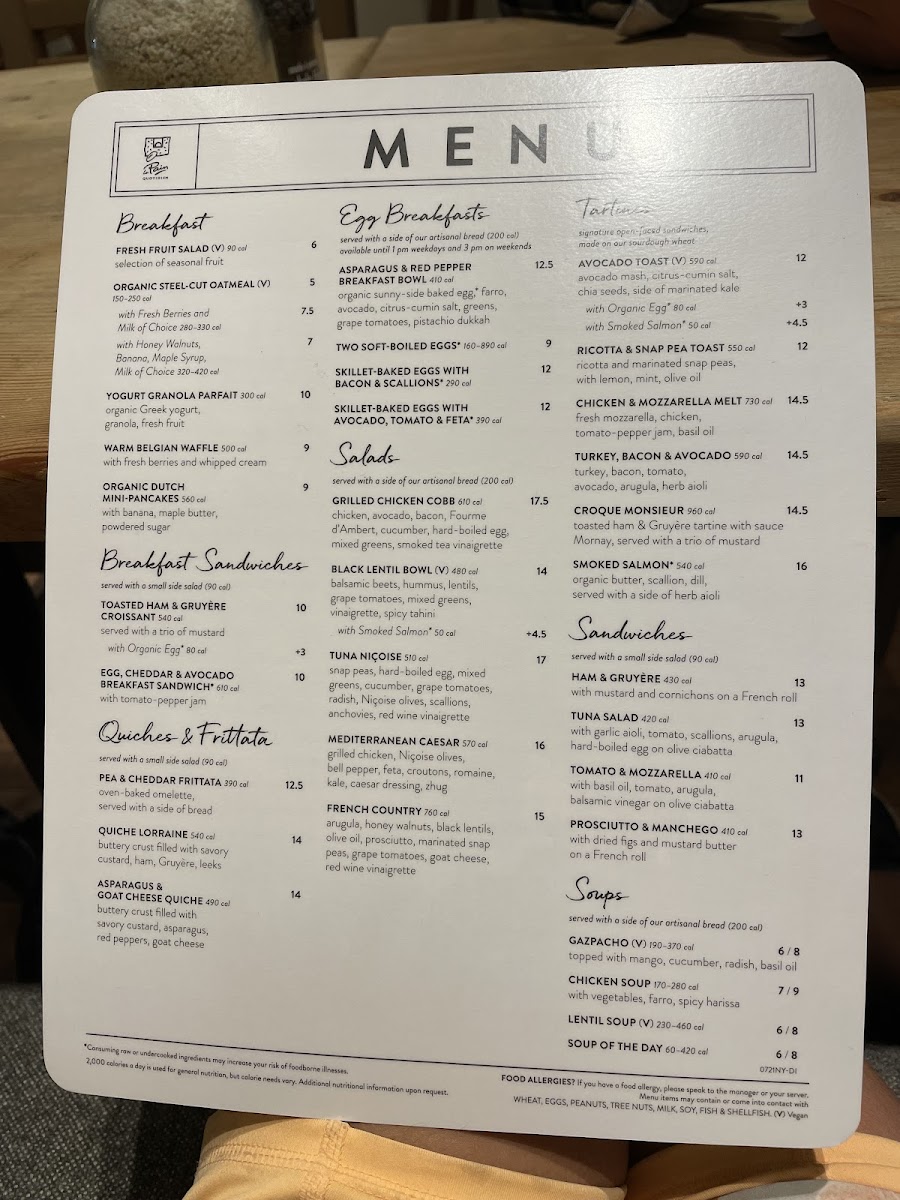 Le Pain Quotidien offers a delightful variety of dishes that combine both hearty and light options. For breakfast, their Sunny Side Breakfast Bowl is a standout, along with the savory Avocado Toast and the indulgent French Cream Doughnut. If you're craving something more filling, the Avocado & Tomato Omelette and Belgian Waffle are great choices. For a lighter option, try the Dutch Mini-Pancakes or Smoked Salmon Omelette. Their viennoiseries section includes fresh pastries like Pain au Chocolat, Cheese Danish, and the classic Croissant. The menu also features delicious tartines, such as the Chicken Mozzarella Melt and the ever-popular Smoked Salmon tartine. If you're in the mood for something hot, the Quiche Lorraine is a must-try. For a healthy touch, the Black Lentil Bowl and Quinoa & Avocado Salad provide satisfying options. When it comes to desserts, the Dark & White Chocolate Mousse Cake and Mixed Berry Tart round off the menu with a sweet finish. The diverse selection at Le Pain Quotidien promises a little something for every taste, whether you're stopping by for breakfast, lunch, or a sweet treat.